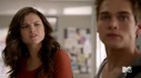 Mas tarde ella observa en la puerta del salón de clases como Liam ayuda a Scott con su ataque de asma dándole su inhalador, se va y sonríe por la actitud de Liam en ayudar a su amigo.