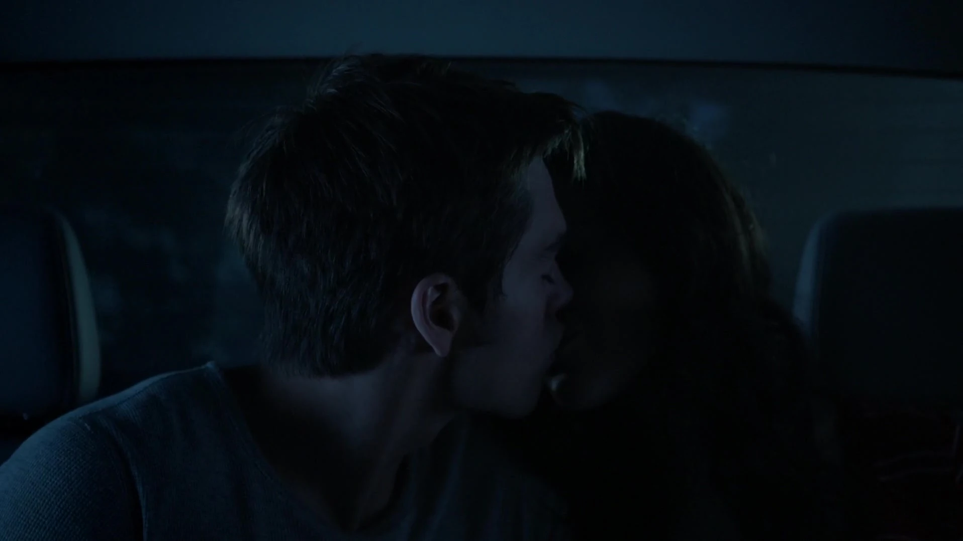 Hayden y Liam besándose en el aparcamiento del instituto.