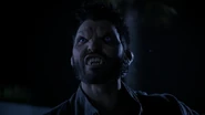 Retour a la réalité Derek s'est pris une balle dans son torse et il tombe à genoux sur le plancher de son loft. Hors de la fumée se dégage Kate Argent. Puis elle se transforme. Son visage est tout bleu, ses lèvres virent au noir , elle a des crocs et ses yeux prennent une teinte verdâtre .