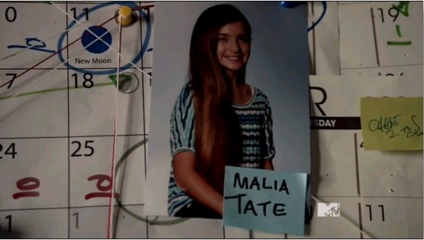Après être revenue des cours d'été, Malia attend la réponse par mail pour savoir si elle passe en terminale avec ses amies. Pendant qu'elle discute avec Stiles sur leur avenir après le lycée, Liam arrive et leur dit que Scott est en danger. La meute va inscrire leurs initiales à la bibliothèque, Malia inscrit "M.T" sur l'étagère (Ce qui signifie qu'elle est une Tate et non pas une Hale). (5.01 Créatures de la Nuit (Creatures of the Night))