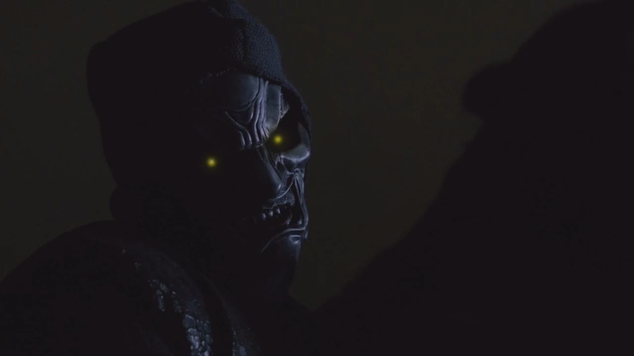 Это рассказывает Крис Арджент (в молодости он выстрелил серебряной пулей в демона Они и та расколола его маску).