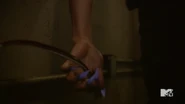 Malia Tate and Kira Yukimura are still trapped in the morgue. Lightning crackles around Kiras body and connects with metal objects in the room. Malia suggests grounding her with something but neither one knows how. Kira says she should have stayed with the Skinwalkers because she’ll never be able to control her abilities. Malia points out that it worked earlier and she was able to cause the brownout (See: Amplification). Kira’s eyes flash orange and she shouts for Malia to go.