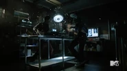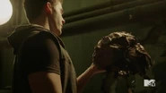 Hayden is still guarding Deucalion in the underground lair. He asks if she is questioning her loyalties. He wonders why Theo didn’t take her since she’s faster and stronger than some in the pack. She says she knows she is a liability because of her feelings for Liam. He tries to get her to leave but she is reluctant. He tells her that he’s no friend of Theo’s and that she should worry less about being a liability and more about her ability to lie.