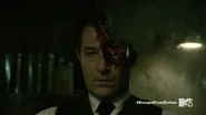 As Parrish continues his advance, Theo picks up the piece of electrical conduit pipe and hurls it into the Hellhound’s chest. Parrish’s fire subsides and his eyes return to normal as he sinks to the floor.
