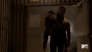At the school, Hayden has fallen asleep on Liam’s shoulder. He notices a black dufflebag and gets up to examine it. Inside he finds chains and asks Scott what they’re for. Scott and Lydia explain that they hope to trap one of the Doctors. Liam says that makes Hayden the bait.
